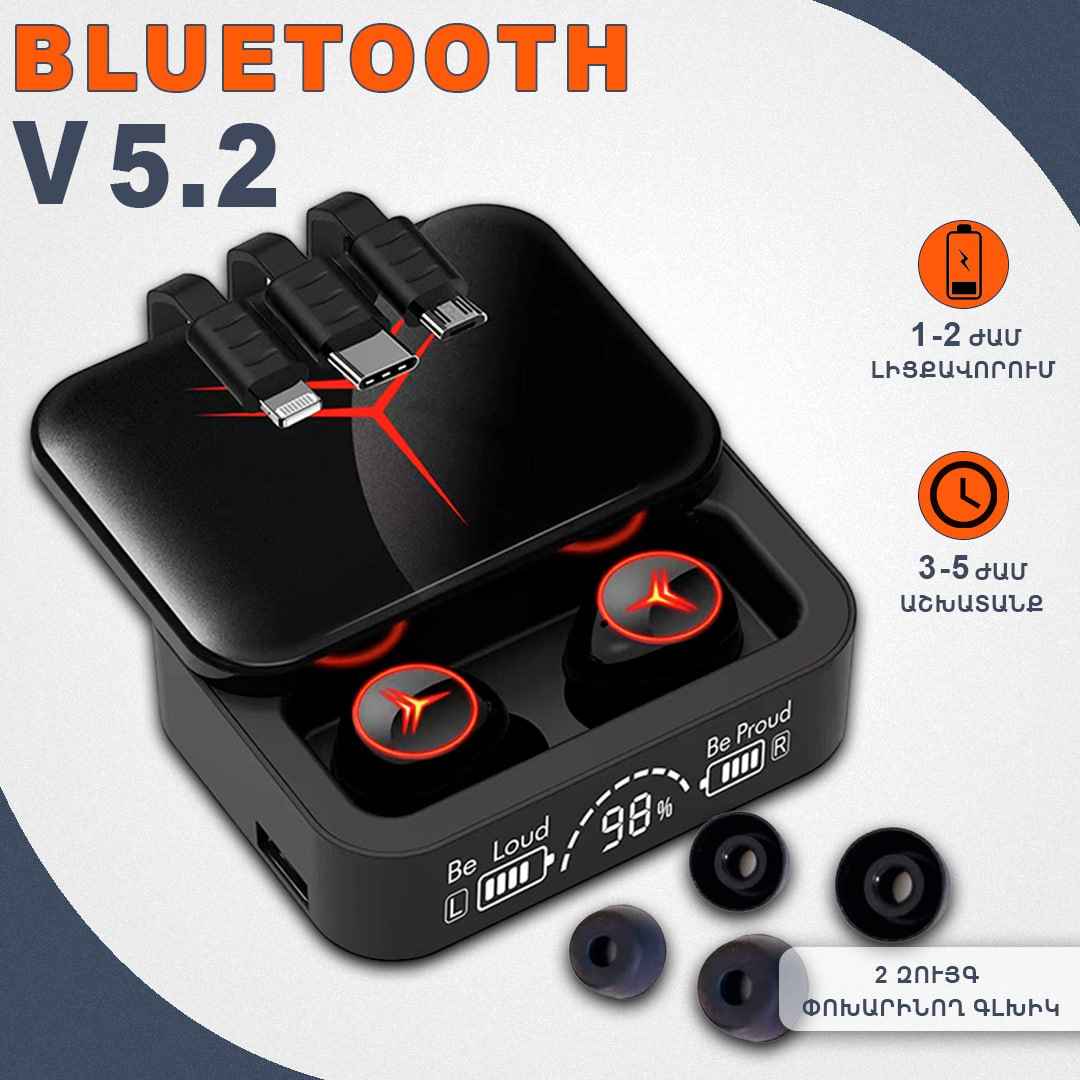 Անլար ականջակալ MX PLUS Աննդադար աշխատանք 4-5 ժամ Power bank 3000mah Լար Lightning/Type-C/Micro